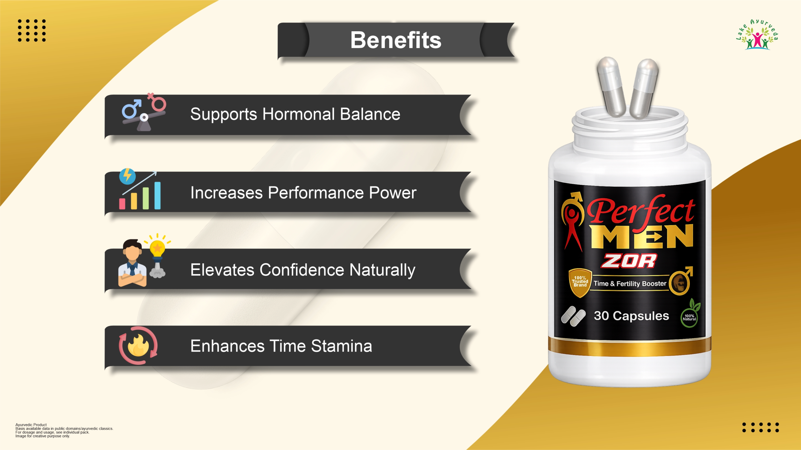 Each capsule of Perfect Men Zor is thoughtfully crafted with time-tested Ayurvedic herbs that support men’s overall strength, stamina, and vitality: