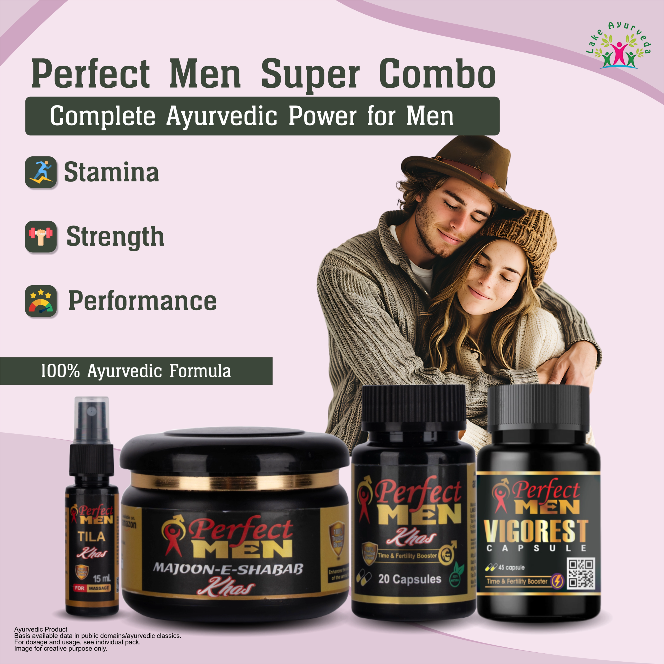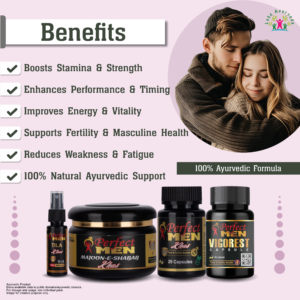 The Perfect Men Super Combo is an Ayurvedic wellness pack designed to improve stamina, strength, and overall male performance. It combines four herbal products to support energy, vitality, and reproductive health naturally.