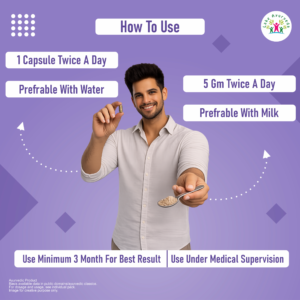 Take 1–2 Sperion Capsules and 1 teaspoon of Sperion Powder twice daily — after breakfast and after dinner — with warm milk or lukewarm water. For personalised dosage guidance, book your free consultation with our Ayurvedic doctor.