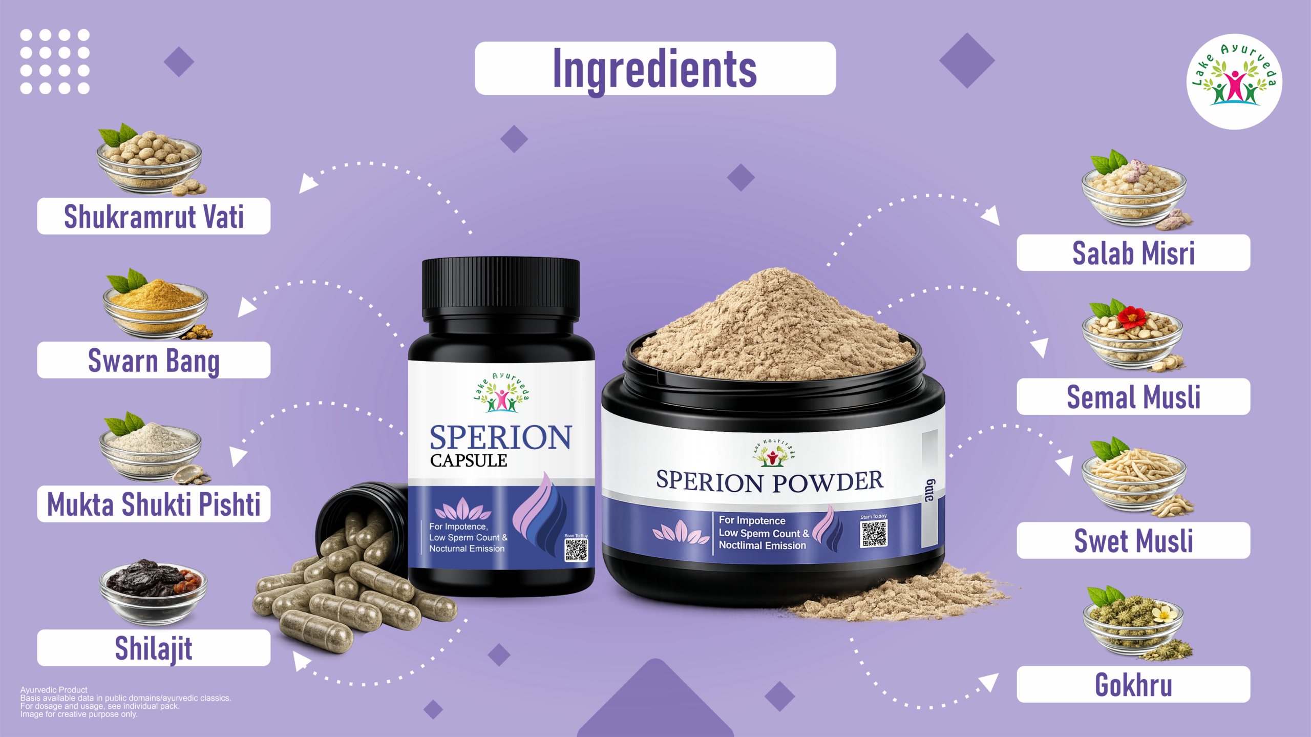 Unlike single-product solutions, Sperion Kit targets the root cause of male reproductive problems — hormonal imbalance, weak Shukra Dhatu, poor sperm production, and nervous system weakness — using 100% natural Ayurvedic ingredients.