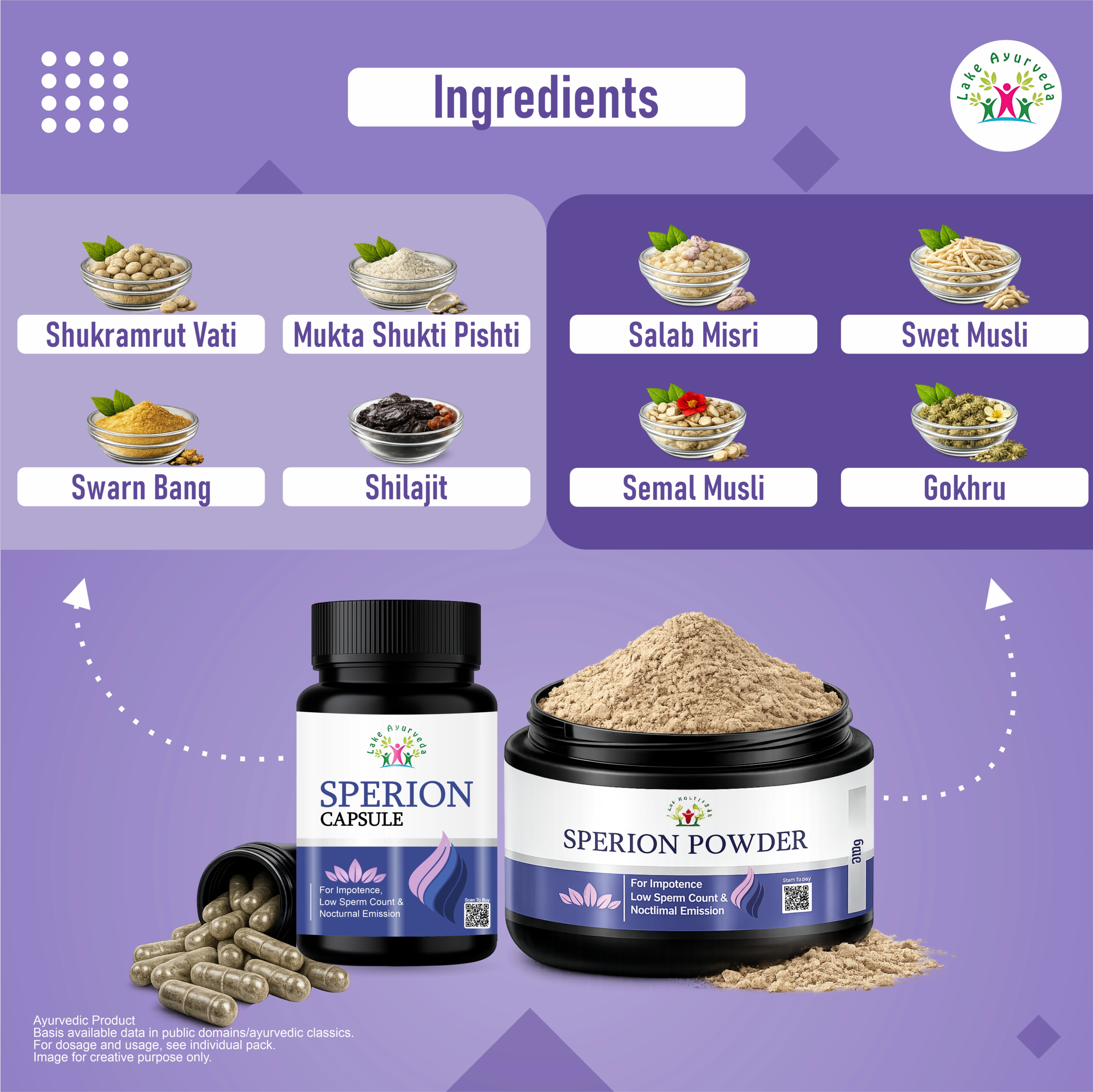 Sperion Kit is made from 100% natural Ayurvedic herbs and is free from harmful chemicals, steroids, or synthetic additives. It is safe for long-term use when taken as directed. However, we always recommend consulting our Ayurvedic doctor before starting, especially if you have any pre-existing medical conditions or are taking other medications.