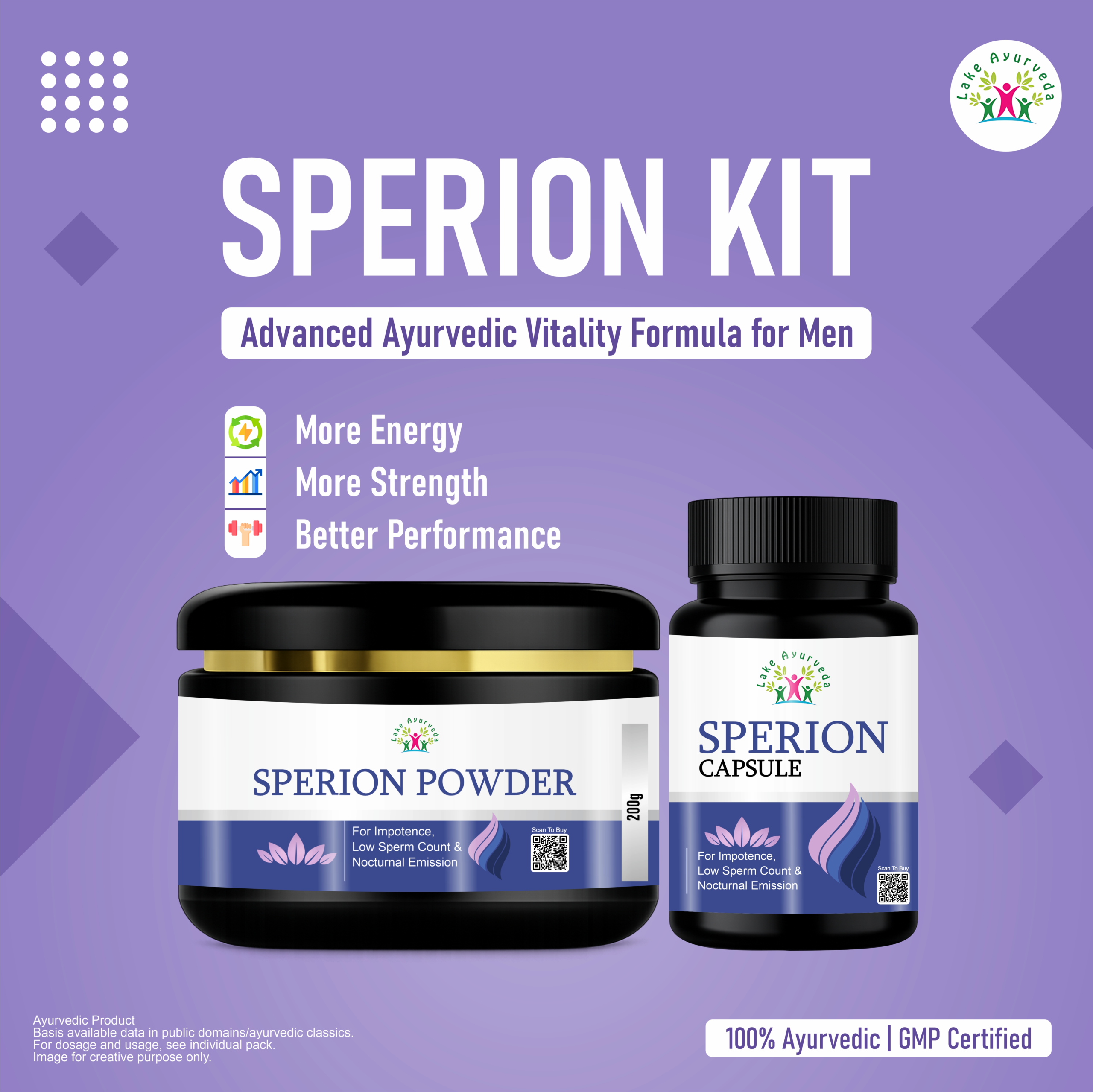 Sperion Kit is a complete two-part Ayurvedic treatment system designed exclusively for men’s reproductive health. It combines Sperion Capsule and Sperion Powder — two complementary formulations that work together to deliver faster, deeper, and longer-lasting results.